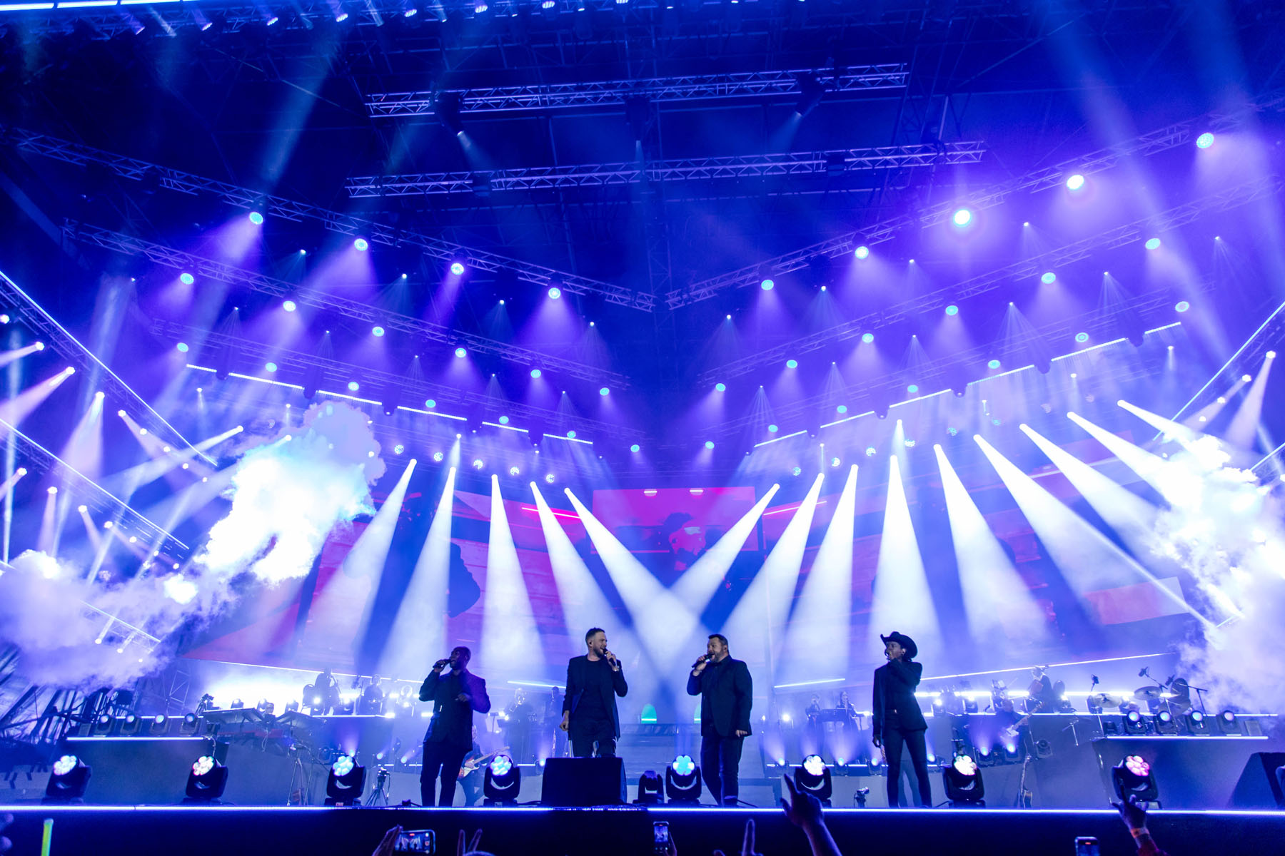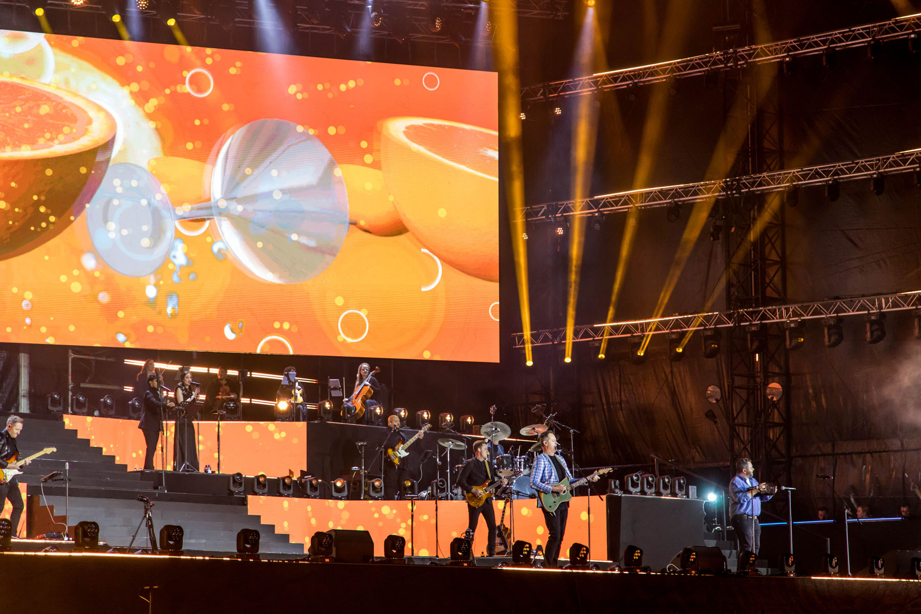 Josh and Andre are big Robe users and advocates, so they dipped into MGG’s extensive stock and designed lighting that was flown underneath a massive StageCo roof system and 25-metre-wide stage below. This was supplied by Gearhouse South Africa (GHSA) together with other structures. GHSA also supplied elements of the L-Acoustics PA together with MGG.