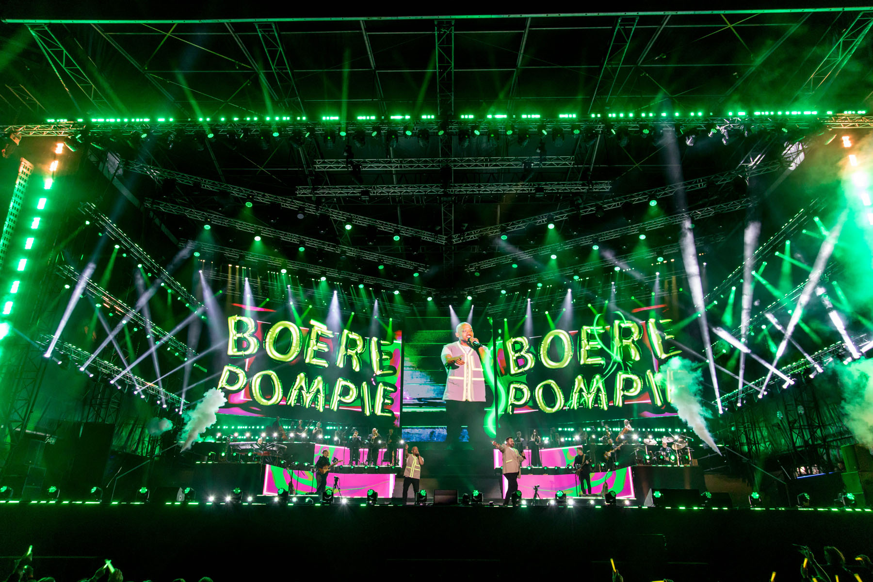 Josh, Andre and MGG have been involved in the annual Afrikaans is Groot run of concerts – latterly staged in Pretoria towards the end of the year – for some time, so having knowledge of the format and style involved was a huge asset, but producer and technical director Ian Vos from Coleske Artists’ vision went beyond just scaling everything up to stadium level. He and the whole creative team wanted to deliver an outstanding, memorable and mind-blowing experience for the audience and performers alike.
