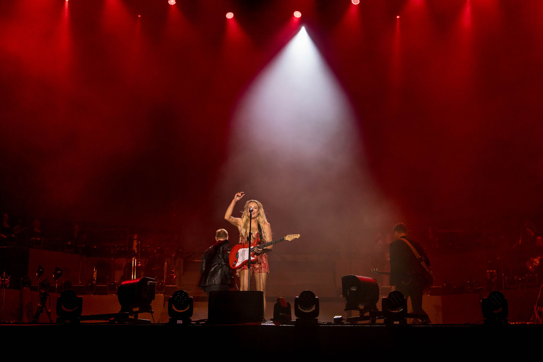 A wide and elegant line of LEDBeam 150s graced the front of the stage, used as dynamic footlights and boosting the stage wash from a lower angle when needed.
