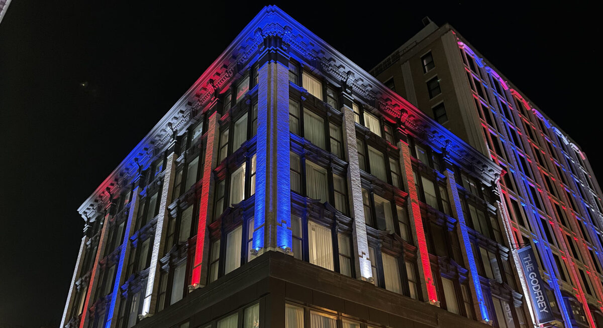 Ron Kuszmar of PORT led the project and explained that the hotel’s owners brought them onboard to specify, design and install a new LED lighting scheme that would highlight the building in all its glory and replace the previous system dating back to when The Godfrey originally opened in 2016.