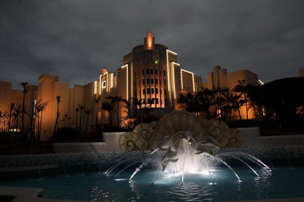 The front façade alone is a striking 250-metre-long stretch, and there are two imposing entrances, one on the main ocean facing boulevard and one the opposite side of the building.