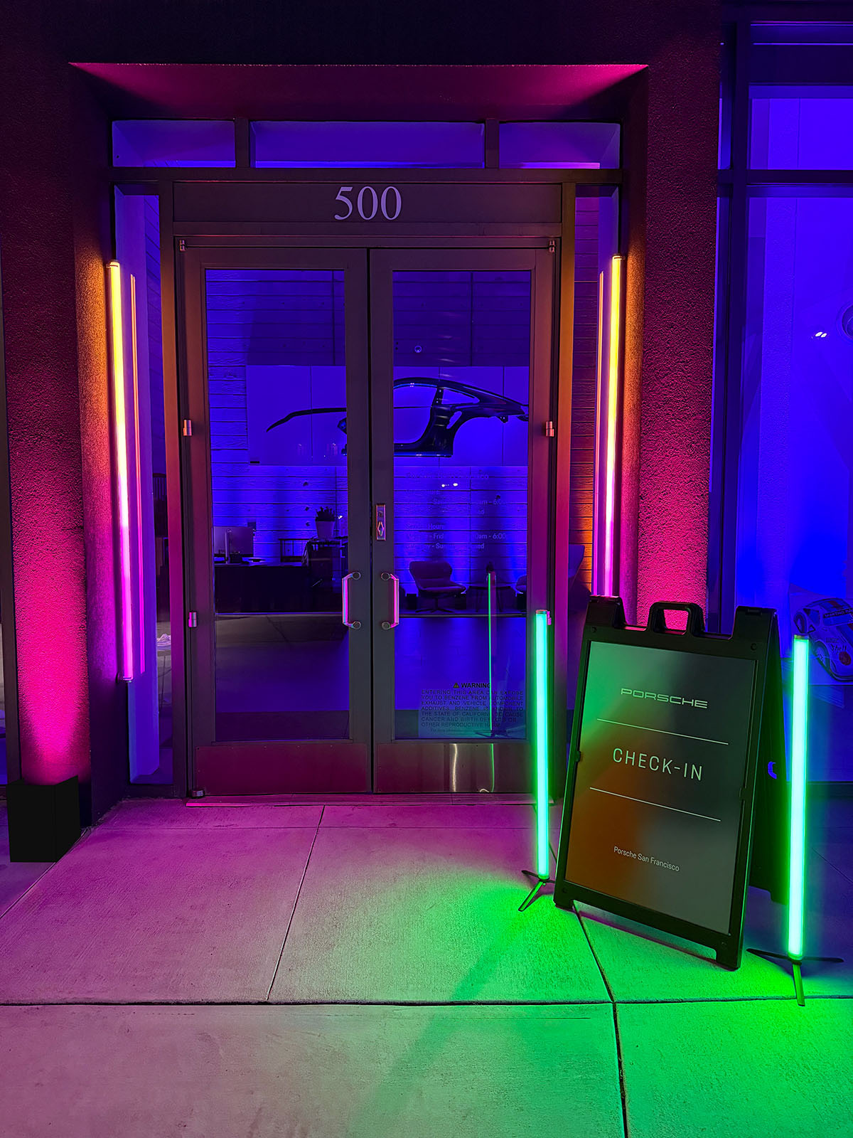 “I wanted to match the style, elegance and innovation of the occasion with a memorable lighting installation,” Sean explained, after he and his production team were asked to light the project by Riley Sims, the West Coast marketing lead for Porsche, for whom they had worked on previous successful projects, some also involving Astera products.