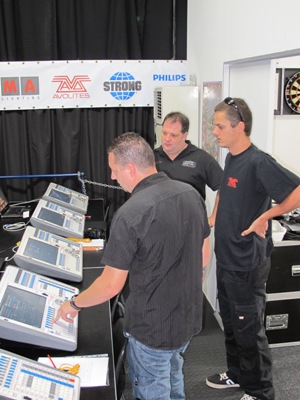 Emma educates Gobo “It was really good,” said Emma Thompson, who was visiting South Africa for the first time. “At times it was difficult having two different levels of students, some complete beginners to lighting, and some really advanced programmers, but I found I could show even the more experienced users some new tricks. Because I love the software it’s great to train on, and it’s so intuitive that even people who have never used a lighting desk before can pick up the basics quickly. I love meeting new people in the industry, so it’s really nice being over here!” With this great spirit, Emma took delegates through different functions such as quick record palettes, picture legends, fixture overlap, pixel mapping, shape generator, creating and editing cues lists, and many other useful functions.