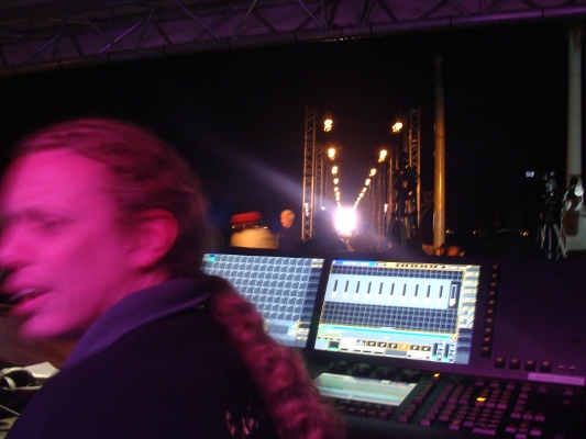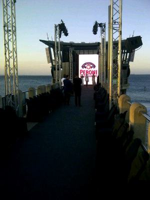 Black Coffee supplied the full technical. The dimmers were at the beginning of the 120m ramp (pier), and there was a socopex run to each of the twenty-four 5m long truss totems erected and reinforced along the pier. Each totem was topped with 6 Par 64s. Set up was two days prior to the event. Simon Hampton was the lighting designer and operated the grandMA2. Also part of the team was Brandon Bunyan and Llewellyn Pieters. Needless to say, they did their fair share of walking.