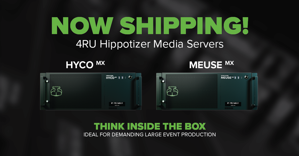 Cincinnati, OH – Green Hippo, an industry leader in media manipulation and 3D mapping, is thrilled to announce the shipment of its new, award-winning 4U Hippotizer MX Series Media Servers, HYCO MX and MEUSE MX.