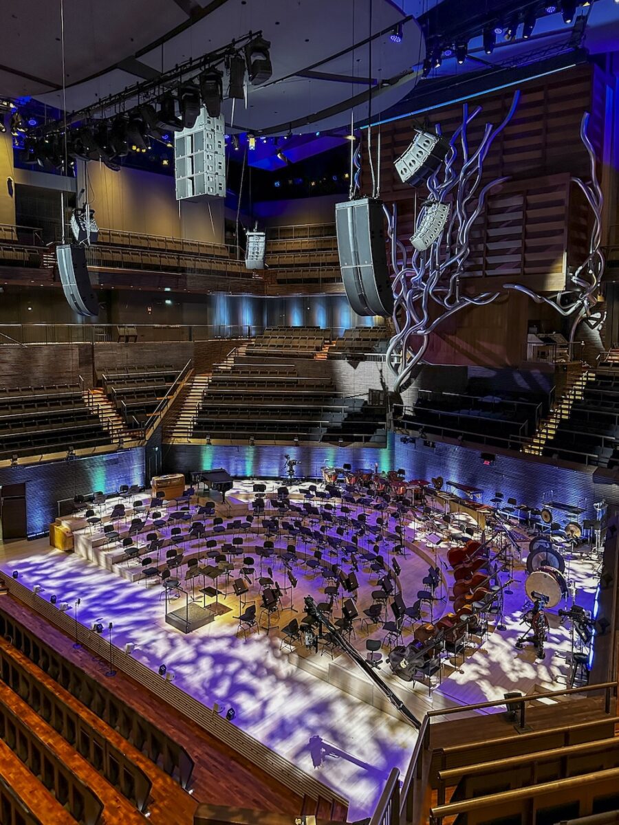 The 1,700-seat concert hall, which hosts approximately 1,500 events annually across its various spaces, presents unique challenges for amplified performances. Hosting international artists, television productions, and radio broadcasts in addition to classical music, the hall requires a solution that could deliver clear, controlled sound throughout its unusual 360-degree seating configuration.