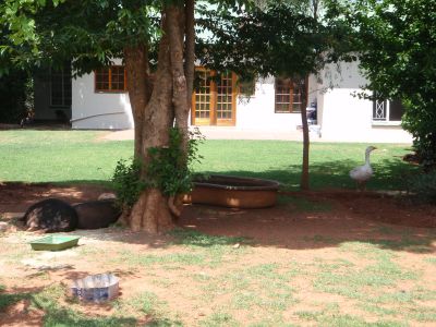 The aim is to provide a welcoming and friendly environment. Under a tree you’ll find a sleeping pig and don’t step to close to the goose carefully guarding the eggs.