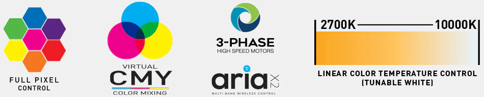 Compact and lightweight, but also tough and reliable, the Vizi Pix Z19 is suitable both for production applications and integration projects. It features durable Seetronic power and data connections – both 5-pin DMX and RJ45 – and a large backlit display providing access to an intuitive menu-driven interface for addressing and configuration. A variety of useful tools are designed to make for efficient as well as creative programming, these include a virtual CMY mode, color temperature presets, and built-in pixel effect programs with variable speed and fade time. Compatible with DMX, RDM, Artnet, and sACN, this versatile fixture also integrates the new Aria X2 wireless control and management system. This offers wireless DMX control, OTA (Over The Air) firmware updates and remote configuration via Bluetooth using the Aria X2 BLE app.