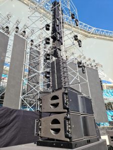 The final setup comprised main hangs of 12 K2 atop six Kara per side, with 12 stacks of two Kara atop two SB28 subs, evenly spaced in front of the stage lip. A further 60 Kara, 12 SB28 and eight SB18 catered for delays, while stage monitoring comprised two stacks of six Kara atop four SB28 for sidefill, plus 24 X15 HiQ along the stage lip. Control was via a total of eight LA12X and 27 LA8 amplified controllers.