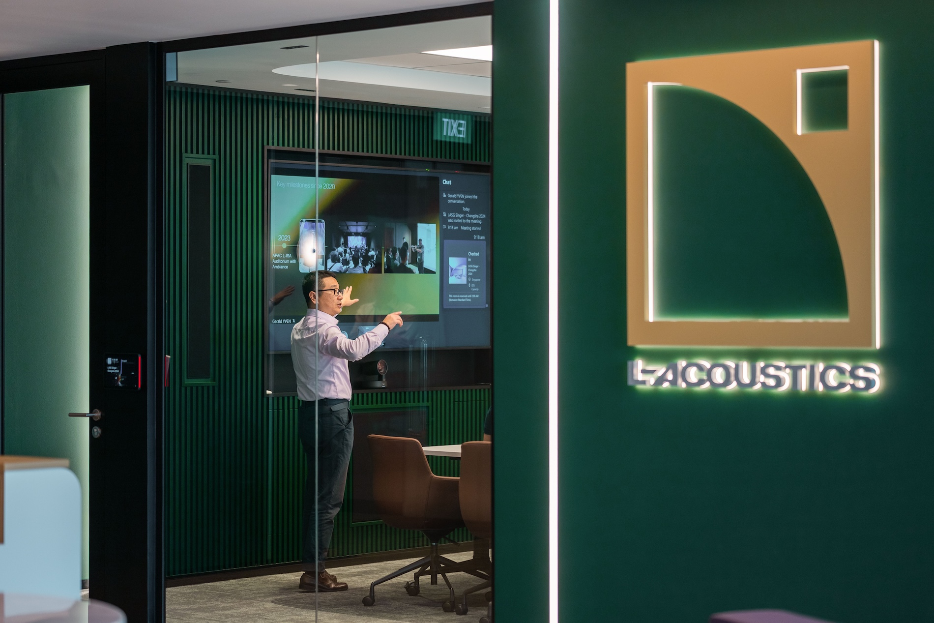 (Above): Tim Zhou, CEO of L-Acoustics APAC in one of the conference rooms equipped with Soka loudspeakers. – © L-Acoustics / Lin Yu Fang
