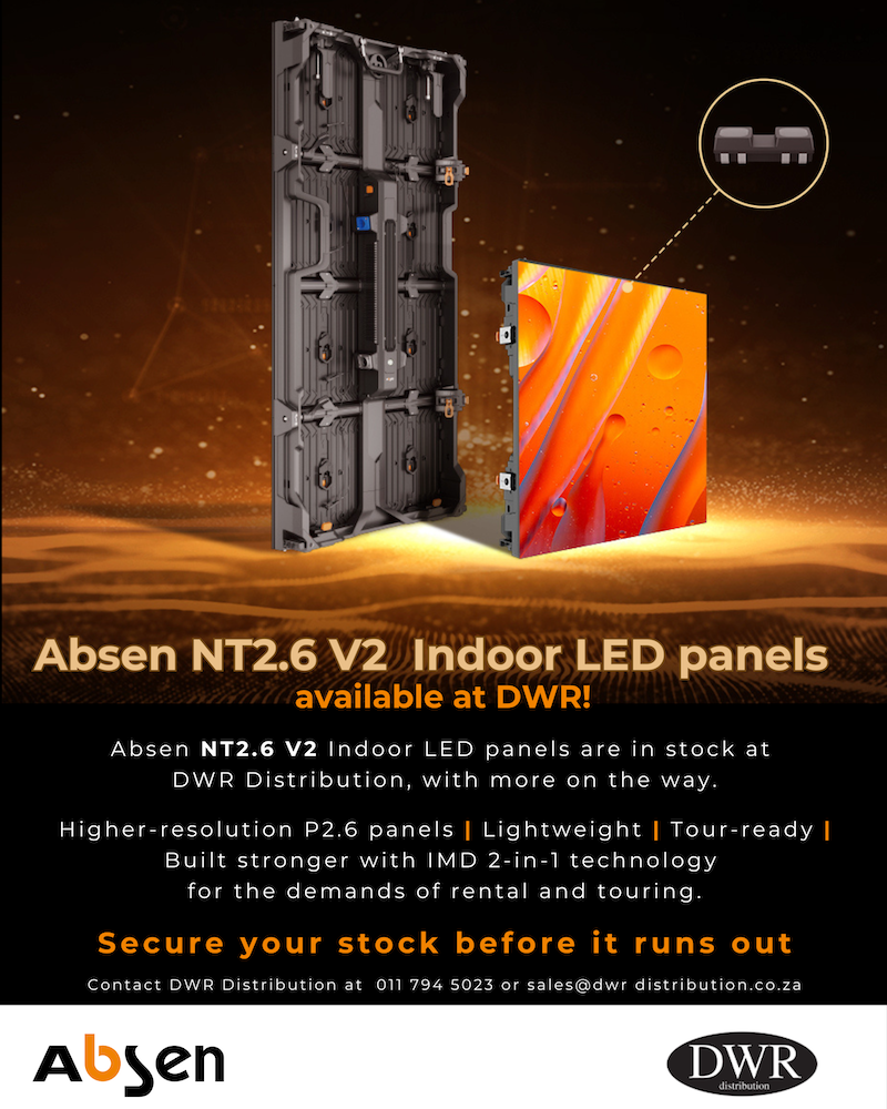 DWR Distribution is pleased to announce that the new-generation Absen NT2.6 V2 Indoor LED panels have arrived in South Africa at DWR Distribution, with additional stock on the way. Delivering higher-resolution NT2.6 V2 visuals, a lightweight design, and robust IMD 2-in-1