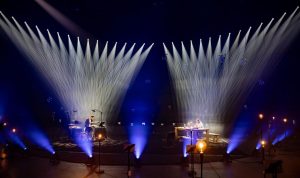 Greil explained the setup of this concert, which was recorded in Bottrop, Germany, in the rehearsal studio of TDA Rental GmbH Produktions- und Vermietungsgesellschaft, while Marc Brunkhardt, who acted as the lighting programmer and director, sat behind a grandMA3 full-size in Frankfurt, Germany, controlling the rig remotely. Sven Offen from Vienna, Austria, was directing the broadcast, while the cameras were controlled from Mainz, Germany. The sound was mixed from Cologne, Germany, and New York, USA. Another world’s first was that the whole remote setup and transmission was based on normal household internet connections and not expensive dedicated fibre broadband connections. While all remote stations were connected via standard connections, the other end in Bottrop was connected via two 10mB DSL uploads and a couple of 4G and 5G routers with consumer SIM cards.