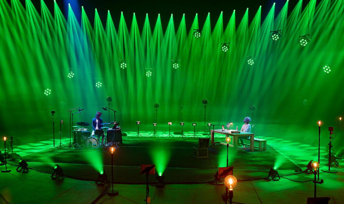 Looking on the lighting and production design side Greil commented: “My vision was to create a cozy intimate design and atmosphere for the show, which created the perfect background and atmosphere for Purple to perform in. Therefore myself and my associate Michael Kuehbandner put together a yet versatile but simple rig with an old school tungsten touch. As we had no audience we wanted to fill the space with some life and added 40 tungsten bulbs on elegant stands. On that end all pretty much business as usual for an intimate acoustic gig. The real challenge came up with the control side, as we fully controlled the rig remotely. As this was not enough, we also made the decision to use the grandMA3 software the very first time, as this promised to be the better platform for the remote setup. The system with a console in Frankfurt connected to a session with the onsite system in Bottrop, performed flawlessly after we worked out all the internet gremlins together with a great team from Riedel. Working together remotely was another challenge, that was on the table after the whole technical setup worked. In the beginning it felt strange to sit in Munich behind some screens, while Marc sat a few hundred kilometers away behind the console and the only communication was via intercom. As we have both worked together many times before, we found a groove quite quickly and learned to master the hurdles of not having the chance to look at our rig and design in real at all. At the end of the day, we learned how to deal with the scenario and came out with a bag full of new experiences and a little proud, that we have done something, that has never been done before in that way, as far as we know.”