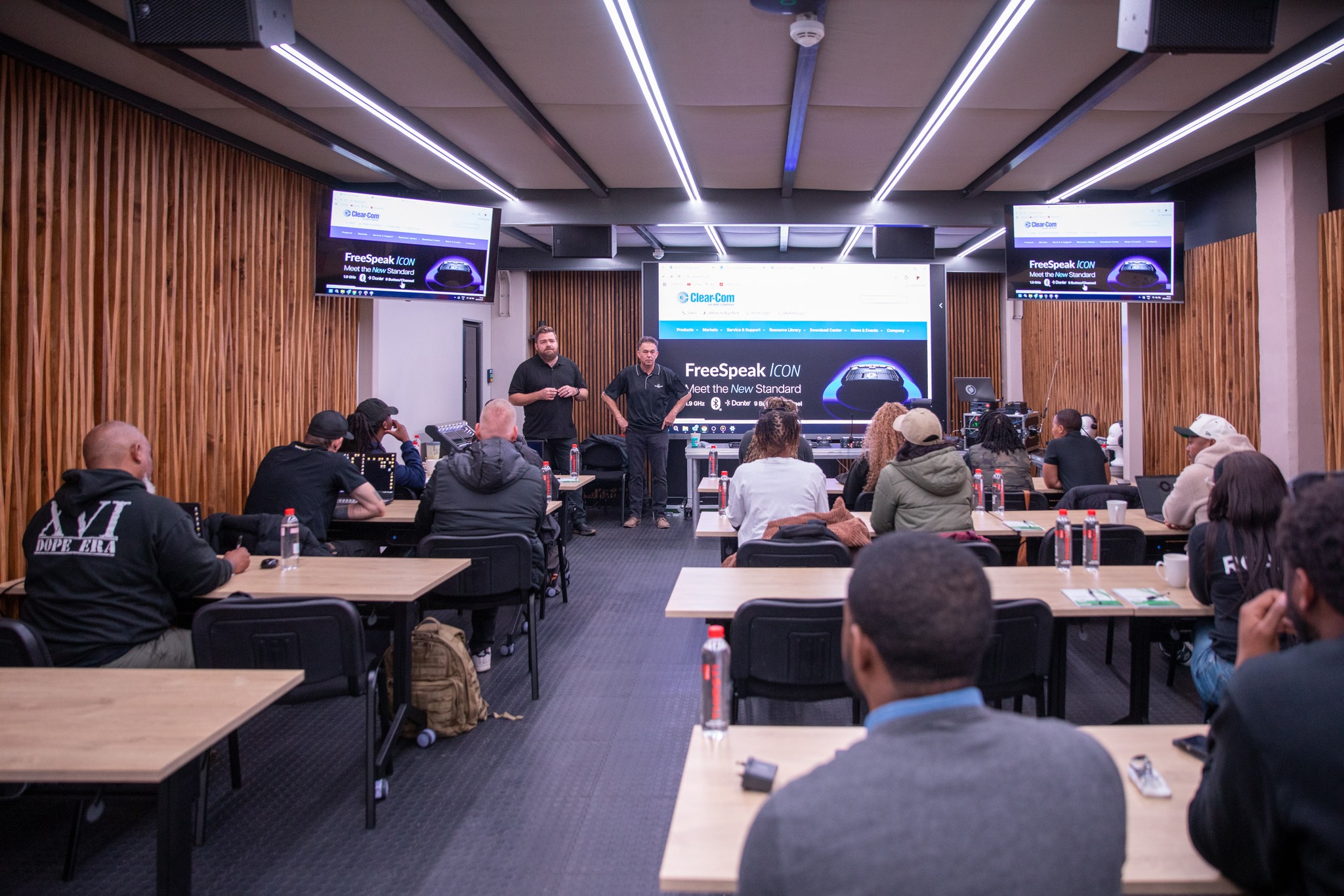 Nick Chapman from Showcom and Kyle Robson from DWR Distribution presented Clear-Com training in June at the DWR offices in Johannesburg. The two-day session covered everything from basic 2-wire communication systems to the full Clear-Com range, including ICON Beltpacks and hardware components that integrate with Arcadia—resulting in a complete multimedia communication system.