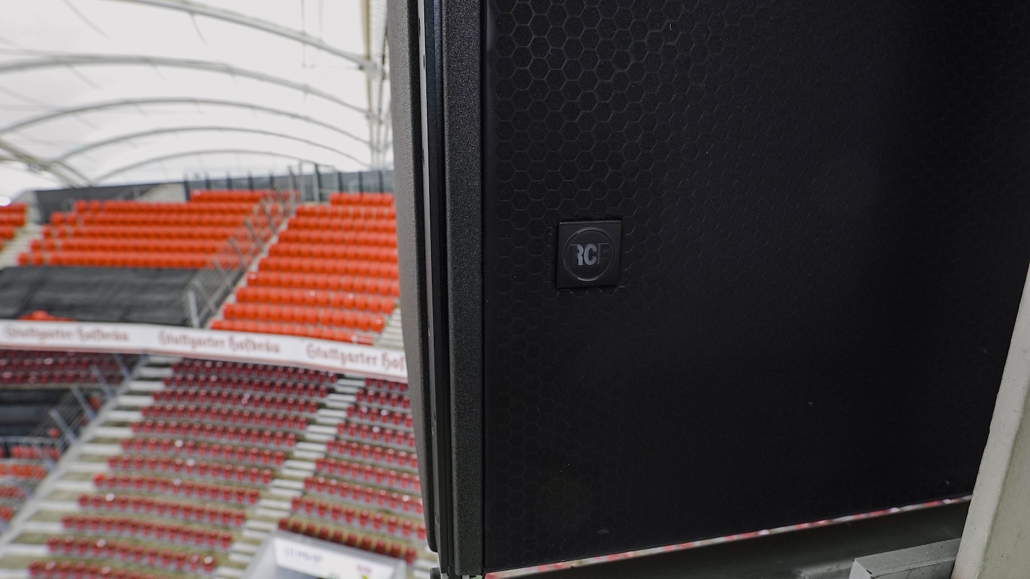 “The roof structure of the MHP Arena is based on ring-shaped and radial steel cables. Both the attachment and the dimensioning of the loudspeaker systems and their mounts were therefore subject to considerable restrictions. The use of standard rigging components was not possible.” comments Wolfgang Huber from AVEO, as he describes a few of the challenges during the early stages. “Despite this, the installation was worth the effort, we developed special components for rigging and our collaboration with the RCF ESG team made the integration much easier. The focus was on optimizing the weight of the overall system.”