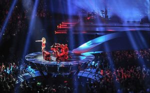 With over 200 Robe lighting fixtures on the rig – supplied by Montreal-based worldwide lighting vendor Solotech – LeRoy had plenty of options to develop and apply the excitement, energy and contrasts!