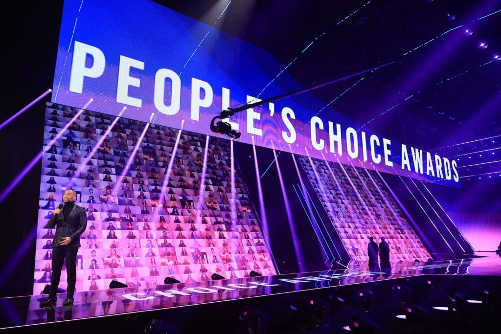 The 2020 E! People’s Choice Awards (PCAs) was again staged at the Barker Hangar in Santa Monica, California, USA, and lit for the third consecutive year by Tom Sutherland of DX7 Design, working for production company Den of Thieves.