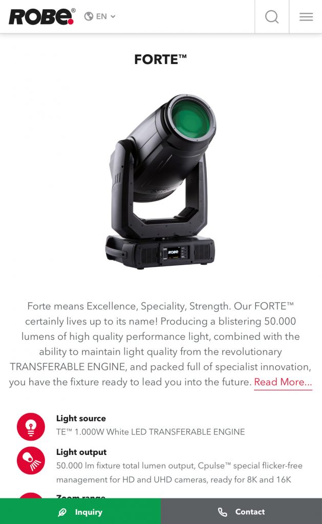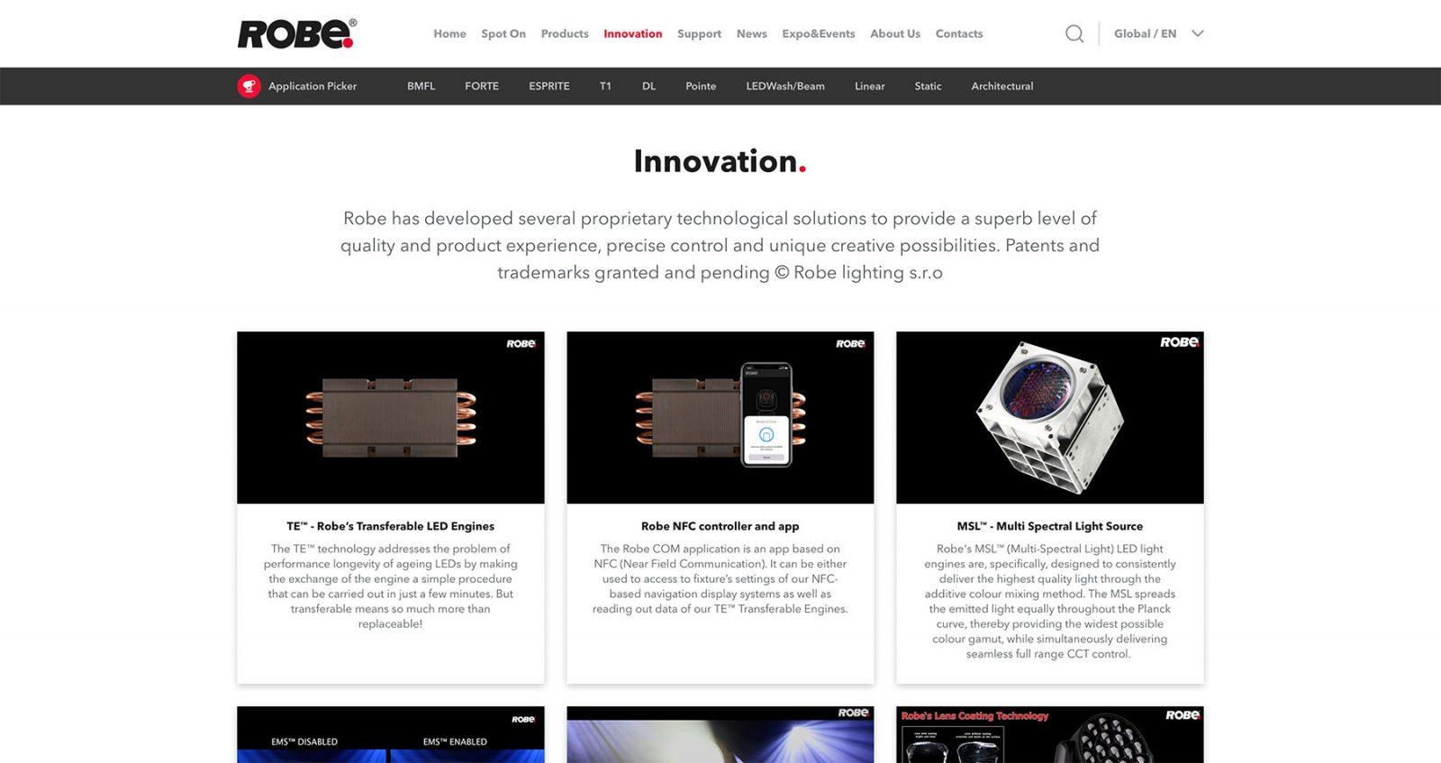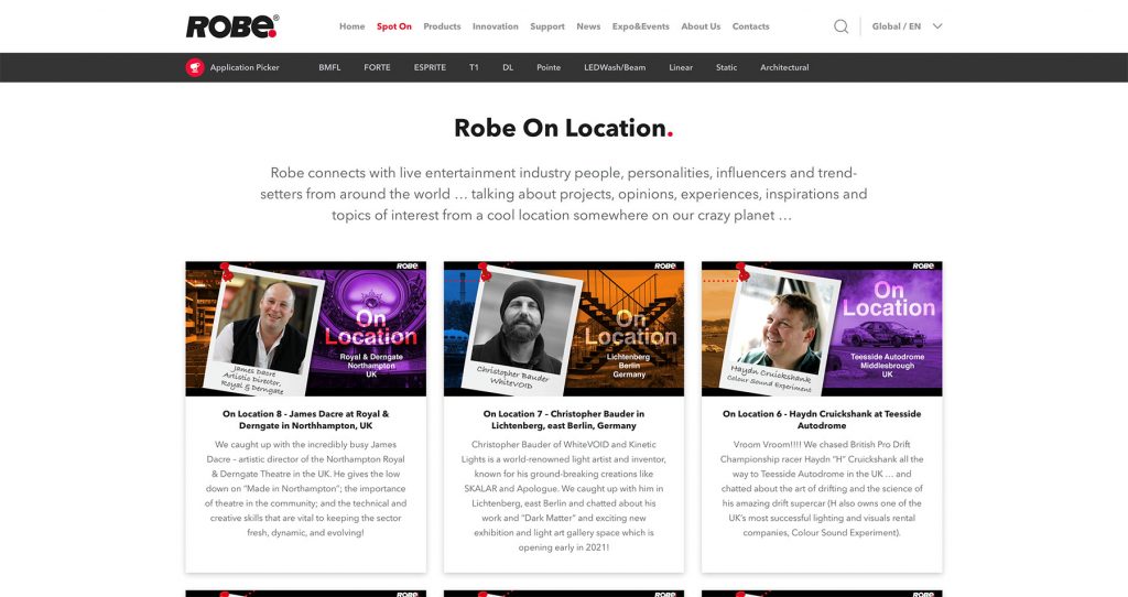 The site is curated to offer a lively mix of interesting data and multiple layers of technical depth for those needing to drill down further into the complexities of products and Robe’s use of ground-breaking technologies.