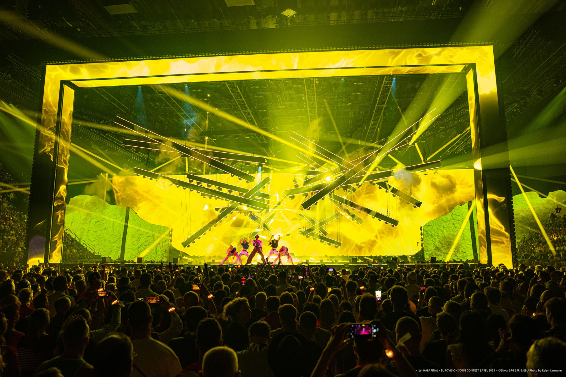 Robe was thrilled to be an official technical partner of Eurovision 2025 in Basel, Switzerland, where lighting designer Tim Routledge and his team, together with London UK-based lighting supplier Neg Earth Lights, helped deliver a truly outstanding production for the world’s largest live music broadcast event, staged this year at the St. Jakobshalle arena by Swiss host broadcaster SRG SSR, co-ordinated by the EBU (European Broadcasting Union).
