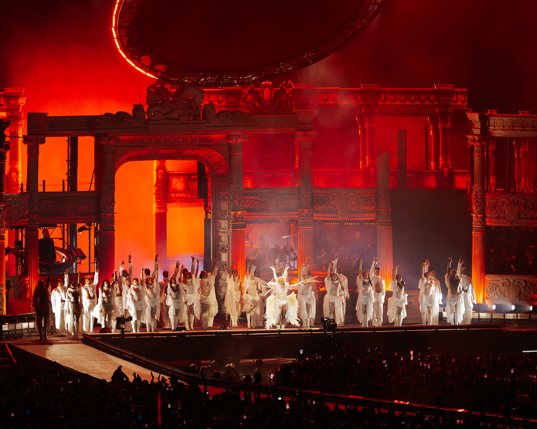 “From the first conversations, we all knew that the goal would be amalgamating the diversity of lighting and visual treatments needed to present and support a show of this scale, depth and detail, and assisting in making connections and getting the energy out to all in the audience across a vast area,” he explained.