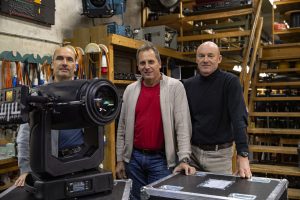 Photos – by Louise Stickland – show left to right: Bojan Repic (lighting department technologist), Matej Hren (lighting department warehouse manager) and Bojan Lenart (head of the lighting department)