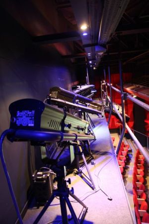 Both Studio theatres are neat and functional. Internal pillars give each space an element of character, while supporting a mezzanine technical gallery that runs the full circumference of each. From these galleries technicians can access the evenly spaced, fixed lighting bridges that afford designers almost every conceivable lighting position. There is no separate dimmer room and dimming is neat and discrete in the form of Philips Strand Lighting Wall Racks – 120 ways in the larger blue studio and 96 in the small yellow one.