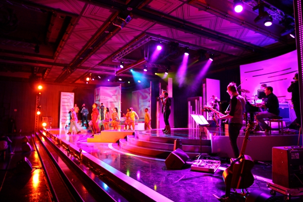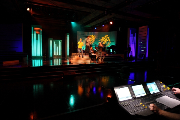 “We had to work around limitations of weight and availability of points to rig,” said Robert. Height was another problem so a mother grid was out of the question. We ended up using the chandelier recesses to our advantage which gave us that desirable clean look.”