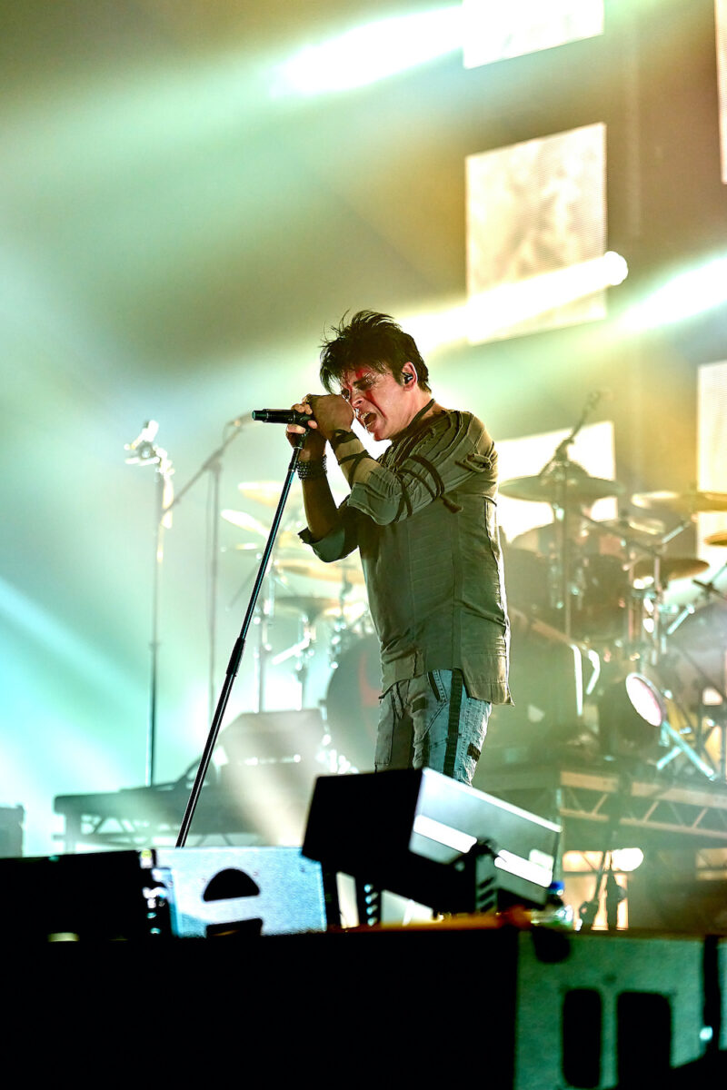 The main scenic element on stage is a huge video wall that oozes ominous, cinematic insights into a broken planet, destroyed by humanity, as Numan manifests as the planet’s own lamenting voice. Numan’s signature industrial synth and electronic sound is full of rage, desolation, and treachery, while Snyder’s beautiful and precisely programmed, oft-menacing lighting design, complements this with disturbing, dystopian atmospherics.