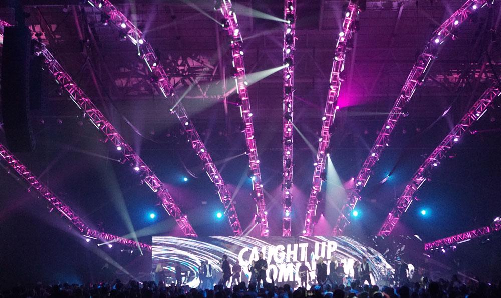 For their recent Planetshakers Awakening Conference in the Hicense Arena Melbourne, Australia, lighting designer and programmer Paul Collison trusted again in MA Lighting using 2 x grandMA2 ultra-light, 1 x grandMA2 fader wing, 1 x MA onPC command wing and 3 x MA NPU (Network Processing Unit) to control nearly 600 fixtures.