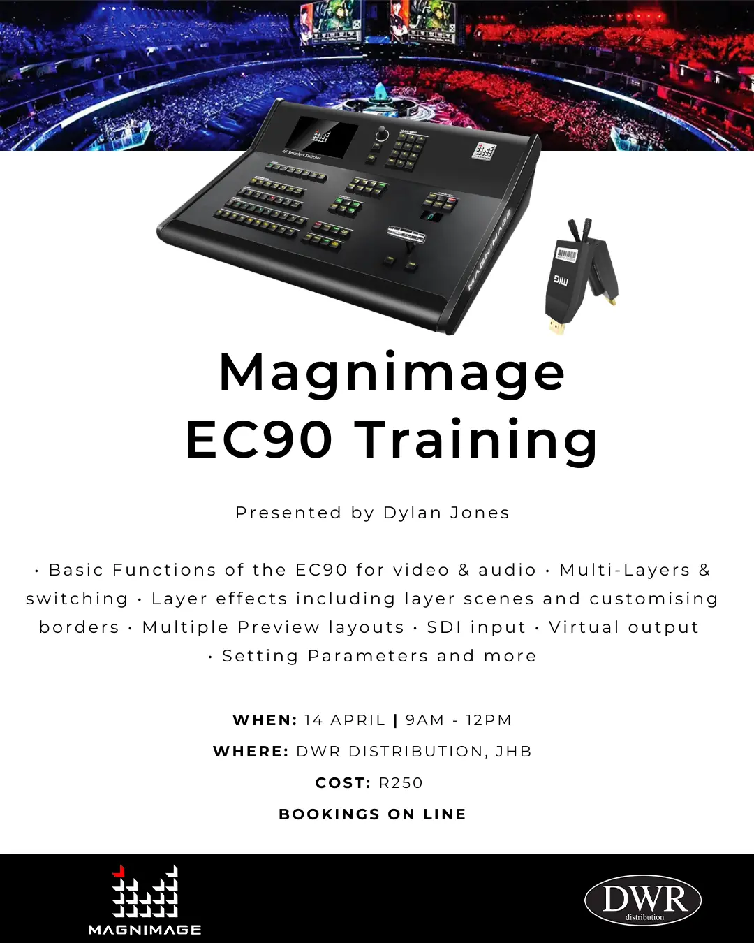 Join Dylan Jones from DWR Distribution as he presents Magnimage EC90 Training on 14 March from 9 am to 12 pm at our Johannesburg office. Aimed at AV technicians, this course is awesome for understanding the EC90, a video switcher